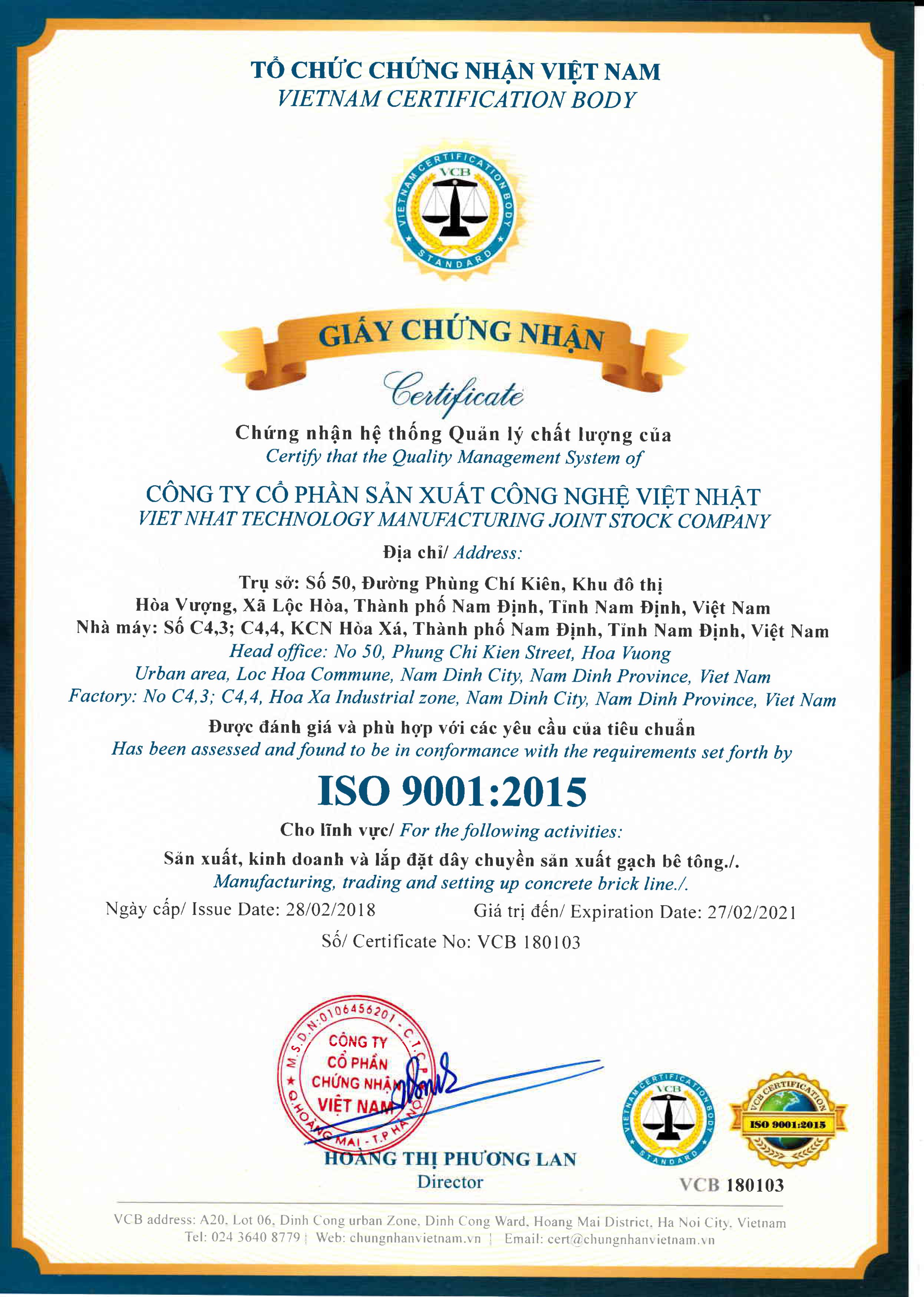 Giấy chứng nhận chất lượng máy ép gạch không nung Việt Nhật Được xuất bản vào 19/09/2018 tại 1825 × 2560 trong Liên hệ Giấy chứng nhận chất lượng máy ép gạch không nung Việt Nhật Giấy chứng nhận chất lượng máy ép gạch không nung Việt Nhật Tiếp theo →